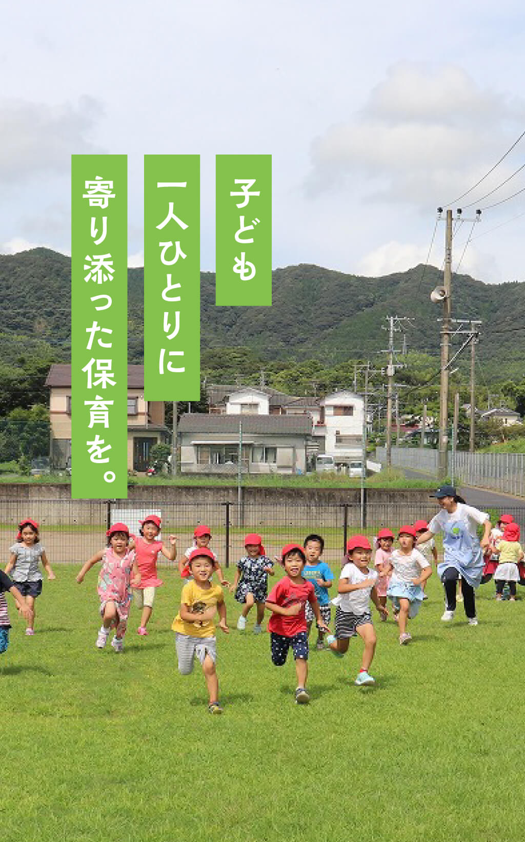 保護者の方々に安心していただける、そして、子どもたちの個々の存在を認め大切にする保育園を目指します。