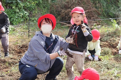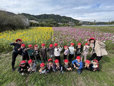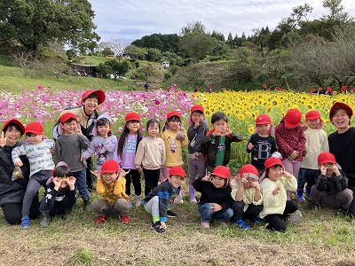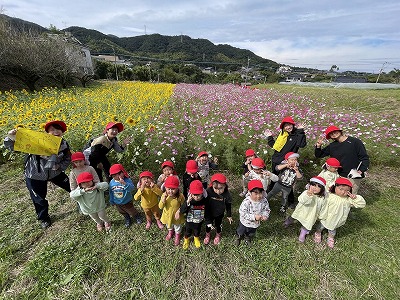 11月19日(水)いもほり遠足に行ってきました😊🍠バスに乗って「平川瑞泉郷」さんに到着しました🚌🎶お芋の掘り方など教えてもらい、早速お芋ほりスタートしました✨ お友だちや先生と協力してたくさん収穫できましたよ(*^▽^*)次は、お弁当の時間です♪お外で食べるお弁当最高でした💓 ご飯のあとは、クラスごとに探検に行きました✨どんぐりや虫さんを発見したり👀最後はコスモスとひまわり畑にたどり着きました🌸綺麗でした🌸 とても充実した時間を過ごすことができました💕「平川端泉郷」さんありがとうございました!!