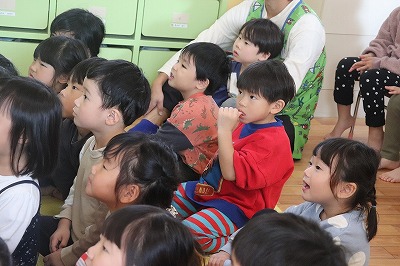 大きい組さんはキリンは510センチと聞いて、驚いたり😲『いちごりら🍓🦍』の絵本が大人気で大笑いしたり😂👏楽しいお話の会になりました!はーといっぱいの皆さん、ありがとうございました!!
