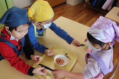 自分たちで作った団子が入っているだご汁は、給食の時間に食べることができました✨団子はもちもちで、ほっと温まる美味しいお汁でした💛