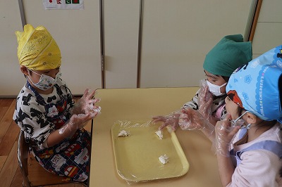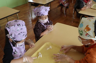 そのあとは、寝かせていた生地をちぎっていきました!とても丁寧に作業する姿が見られましたよ💗