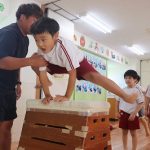 4月15日(火)今年度初めてのスポーツ教室がありました! かっこいい『お山座り』や『気をつけ』の姿勢を教えてもらいました✨ りゅうま先生がみんなの体を持ち上げたり、くすぐったりしても良い姿勢のままびくともしない子どもたち👏頑張っていましたよ(*^▽^*) りゅうま先生ありがとうございました!!
