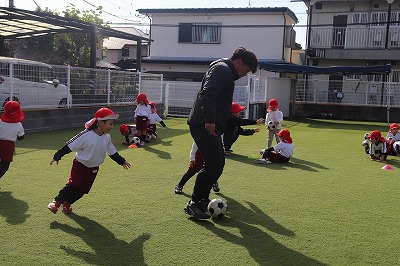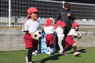 12月9日(火)スポーツ教室がありました!ペコちゃん広場に行き、サッカーボールを使って体をたくさん動かしました⚽手を使わずに足でボールを止める練習やドリブルの練習をしました😊どんな練習も一生懸命頑張る子どもたちの姿はとっても素敵でした✨つぎはどんなことにチャレンジできるかワクワクな様子の子どもたちです♬