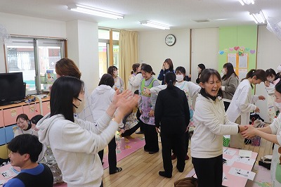 1月10日(土)午後から職員研修を行いました!前半は、講師の先生に来ていただき「人権擁護」について学びを深めました。後半では、令和7年度キャリアアップ研修を受けた職員の発表を聞いたり、行事の振り返りをして反省点を挙げ、見直しをしたりしました。 午前保育のご協力ありがとうございました。