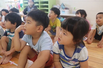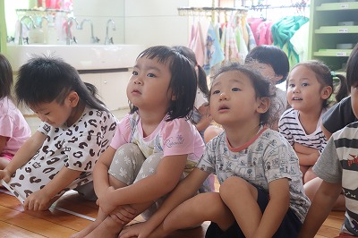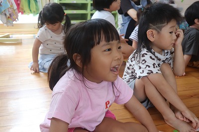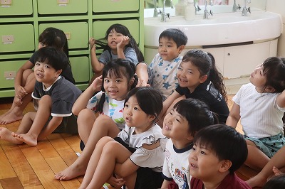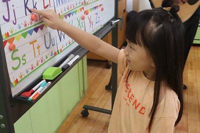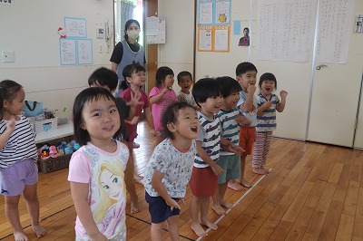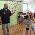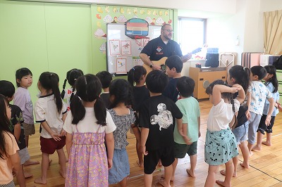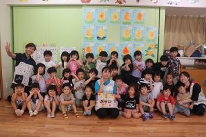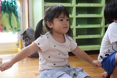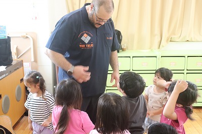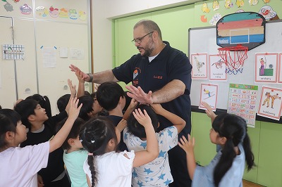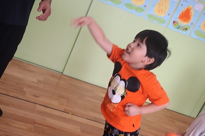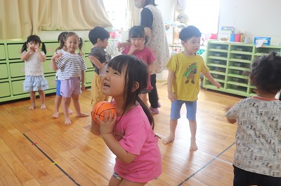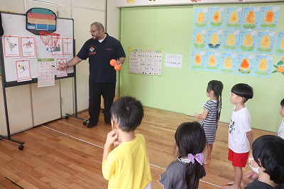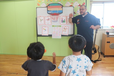 9月30日(火)英語教室がありました⭐スポーツ(体操や弓道、バスケットボールなど)の発音の仕方を教えてもらいました🎵また、バスケットボールとゴールを使って、2チームに分かれてシュート対決をして、入ったら「oh yes」、外してしまったら「oh no」と声をかけ合いながらスポーツと英語どちらも取り入れた楽しい遊びをしました✨ バスケットゴールに入れるの頑張っていましたよ🏀✨