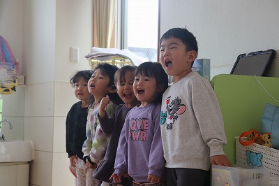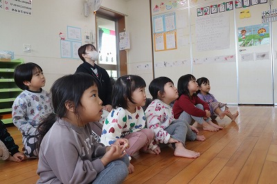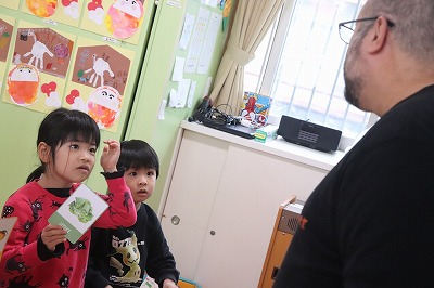 1月27日(火)英語教室がありました!前回と同じ『食べ物』について学びましたよ✨今回は絵カードも使ってゲームをしながら楽しく活動しました😊ロジャー先生の発音をよく聞いている子どもたち!とっても上手だね👍と言われて嬉しそうでした💕