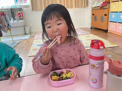 1月14日(水)は、月に一度のお弁当の日でした🍱いつも愛情たっぷりのお弁当を準備してくださり、ありがとうございます💗とっても嬉しそうにもぐもぐ食べていましたよ♪(大きい組さんの様子は水族館のブログに載せています😊)