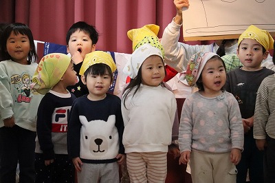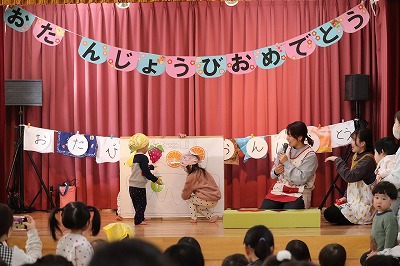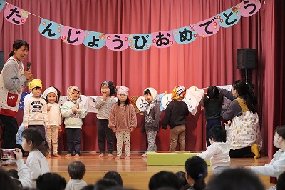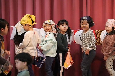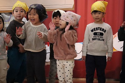 今月のクラスの出し物は、たんぽぽ組さんでした😊絵本の『いちにちシリーズ』が大好きなたんぽぽ組さんは、『いちにちパパとママ』になって登場してくれました♪洗濯物を干すときは、柔軟剤ハミングのCMソング『あなたのハミング』を口ずさむ姿がとっても可愛らしかったです💗また、買い物をするときは、スーパーマーケットタイヨーの『タイヨーの歌』を歌っていて、いつの間にか会場みんなも歌いだして大盛り上がりでした🤣洗濯物干しも買い物も、とっても上手でしたよ👏