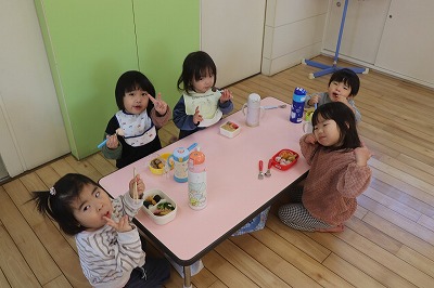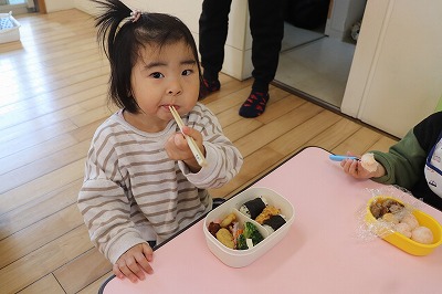 12月29日(土)お弁当の日でした🎶お外でたくさん遊んだ後のお弁当はとてもとても美味しかったです😊✨