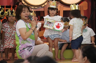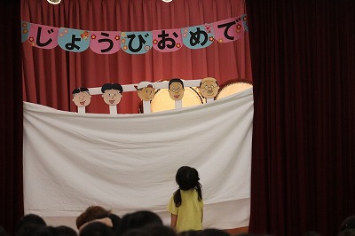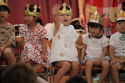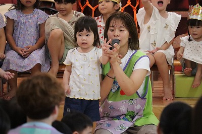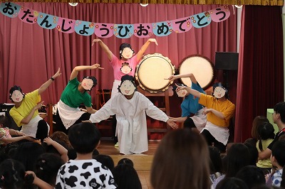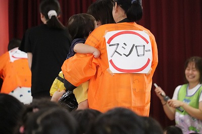 クラスの出し物は、すみれ組さんでした💓『おすしのピクニック』の曲に合わせて登場♪