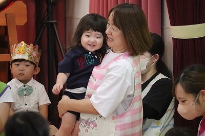 先生たちの出し物では、サザエさん一家のお顔がひょっこり出てきた👀✨と思ったら、サザエさんが6人登場!オープニング曲に合わせてダンスダンス💃最後のポーズが決まっていました😂👏みんな誰かなぁ~😊?とワクワクしながら見ていましたよ🎵ファンサービスに大きい組さんは大喜びでした💗